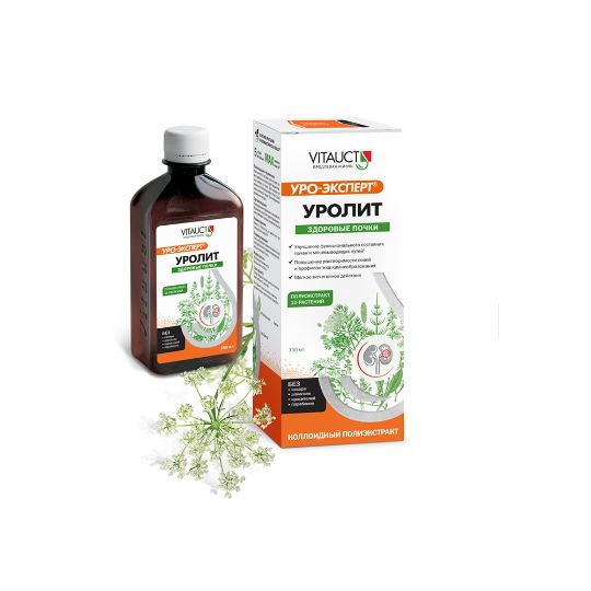 Уролит от компании VITAUCT содержит ряд эфирных масел растений, основной особенностью которых является растворение осадочных камней. Уникальность препарата в том, что действует сразу на все типы камней: ураты, фосфаты, кальцинаты, оксалаты. Основным компонентом является масло семян дикой белой моркови – на сегодняшний день это самое сильное из всех известных средство для растворения камней. Марена красильная дополняет действие моркови и препятствует образованию камней в желчном пузыре. Уролит выводит мелкие конкременты из почек и желчного пузыря. Оказывает противовоспалительное, желчегонное и мочегонное действие. Улучшает кровоснабжение печени и почек. Нормализует минеральный и водно-солевой обмен. Предупреждает появление камней в почках и желчном пузыре. Обладает антибактериальным действием.